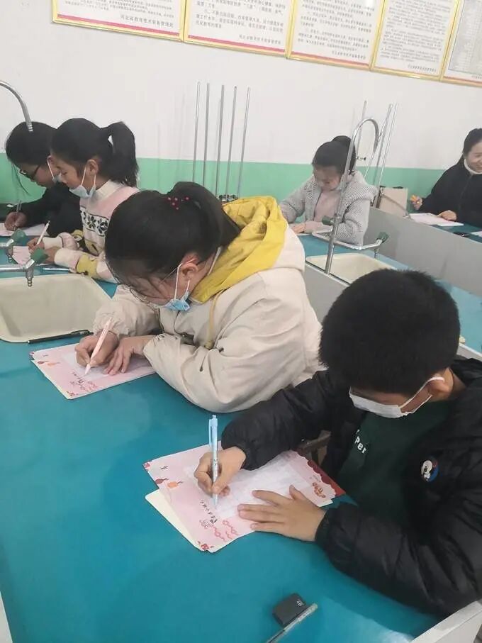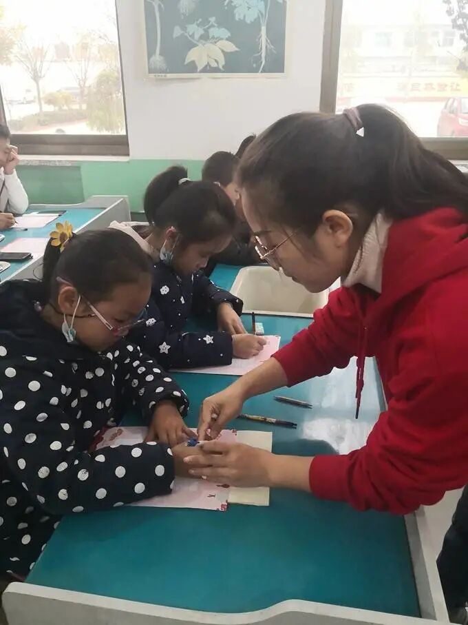 11月17日,铸翰教育送课下乡到灵寿县南寨学区。在良同小学,李心蕊老师上了一堂短撇书写的精彩公开课,示范书法双师教学。课间,她指导小学生坐姿、执笔、运笔,讲解短撇运用十字八点格的书写方法。